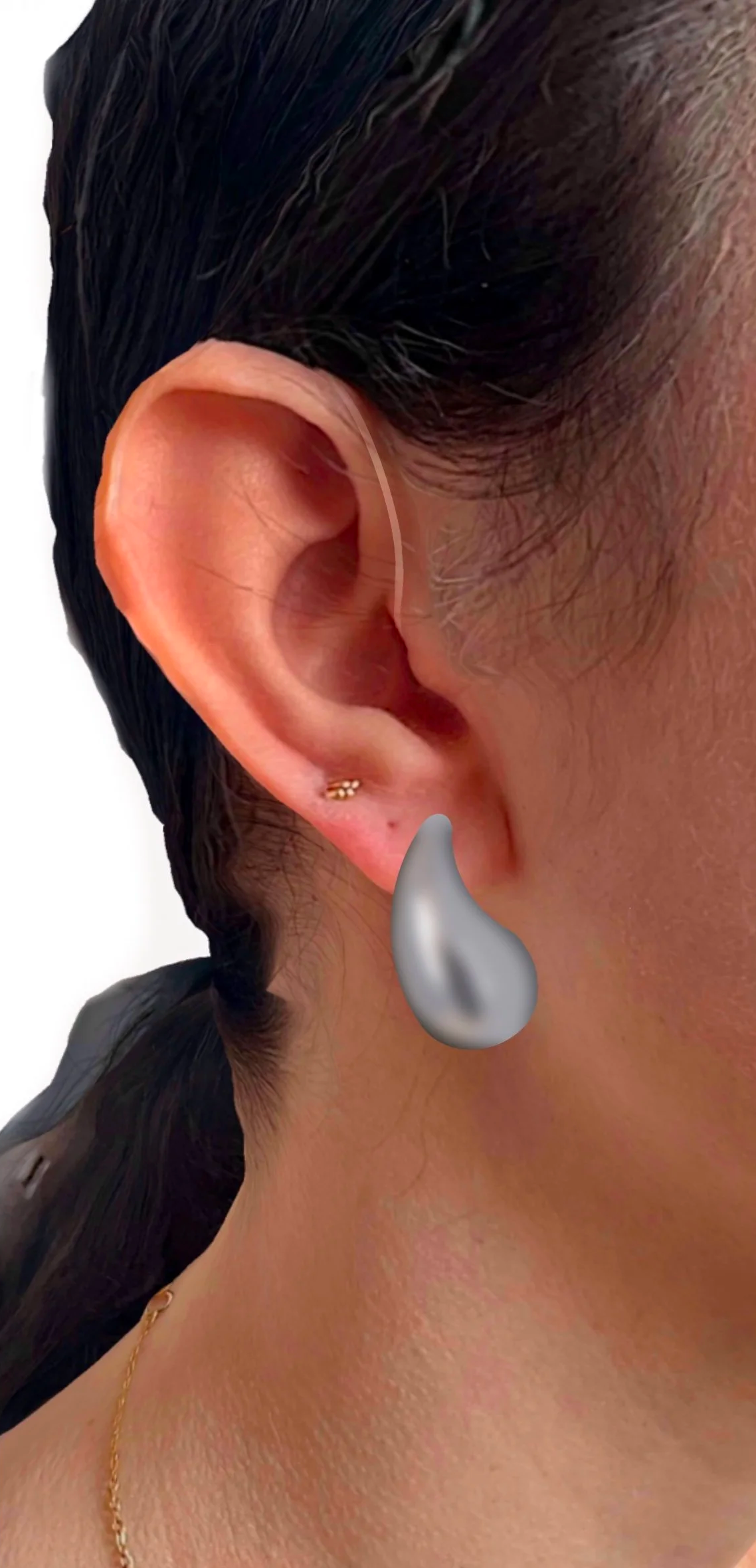 This traditional hearing aid is designed to appear more discreet by taking the form of an earring. For this class project, I was tasked with creating a wearable piece based on a 3D scan of my model, resulting in a custom design that integrates function with personal style.