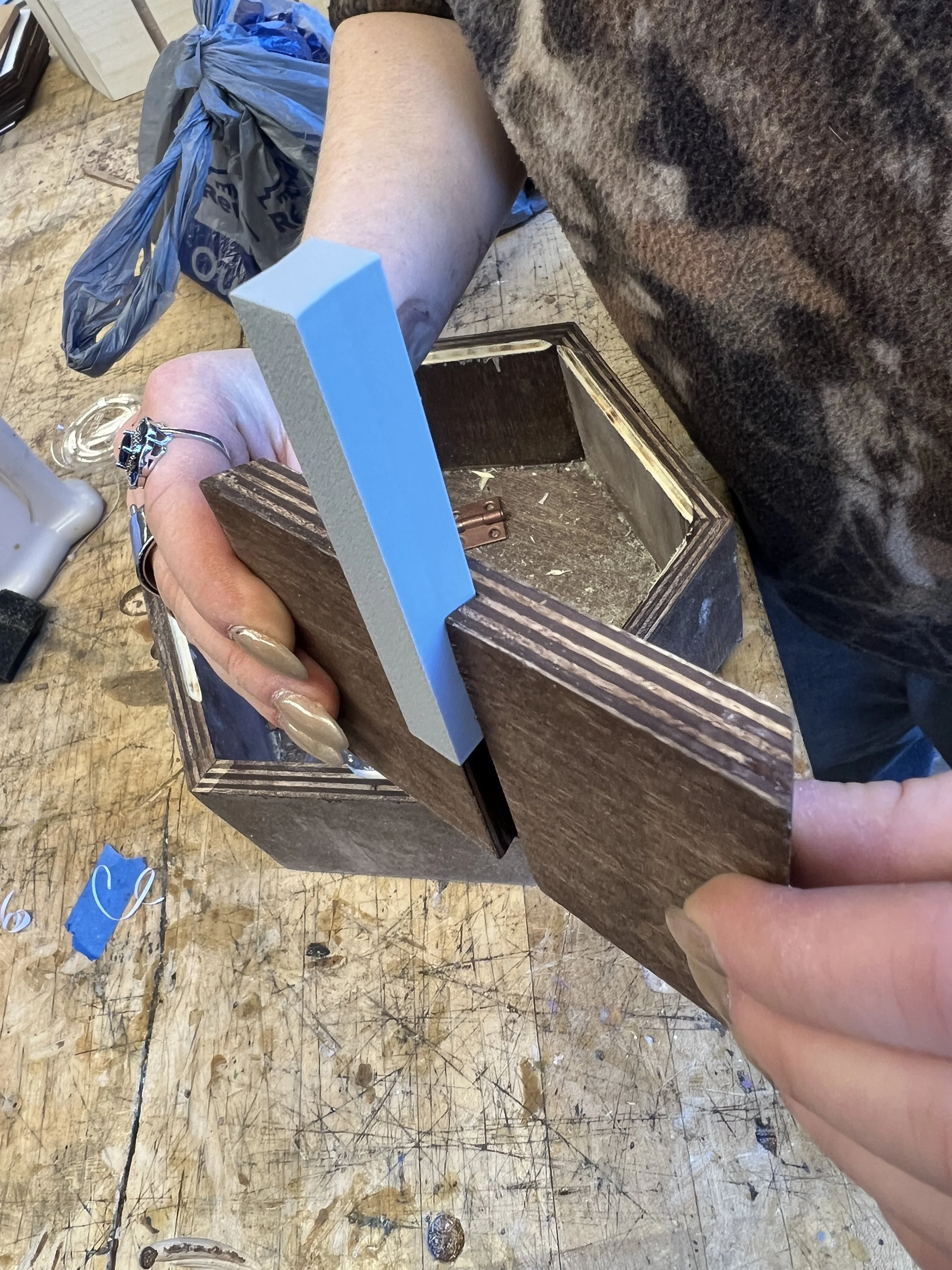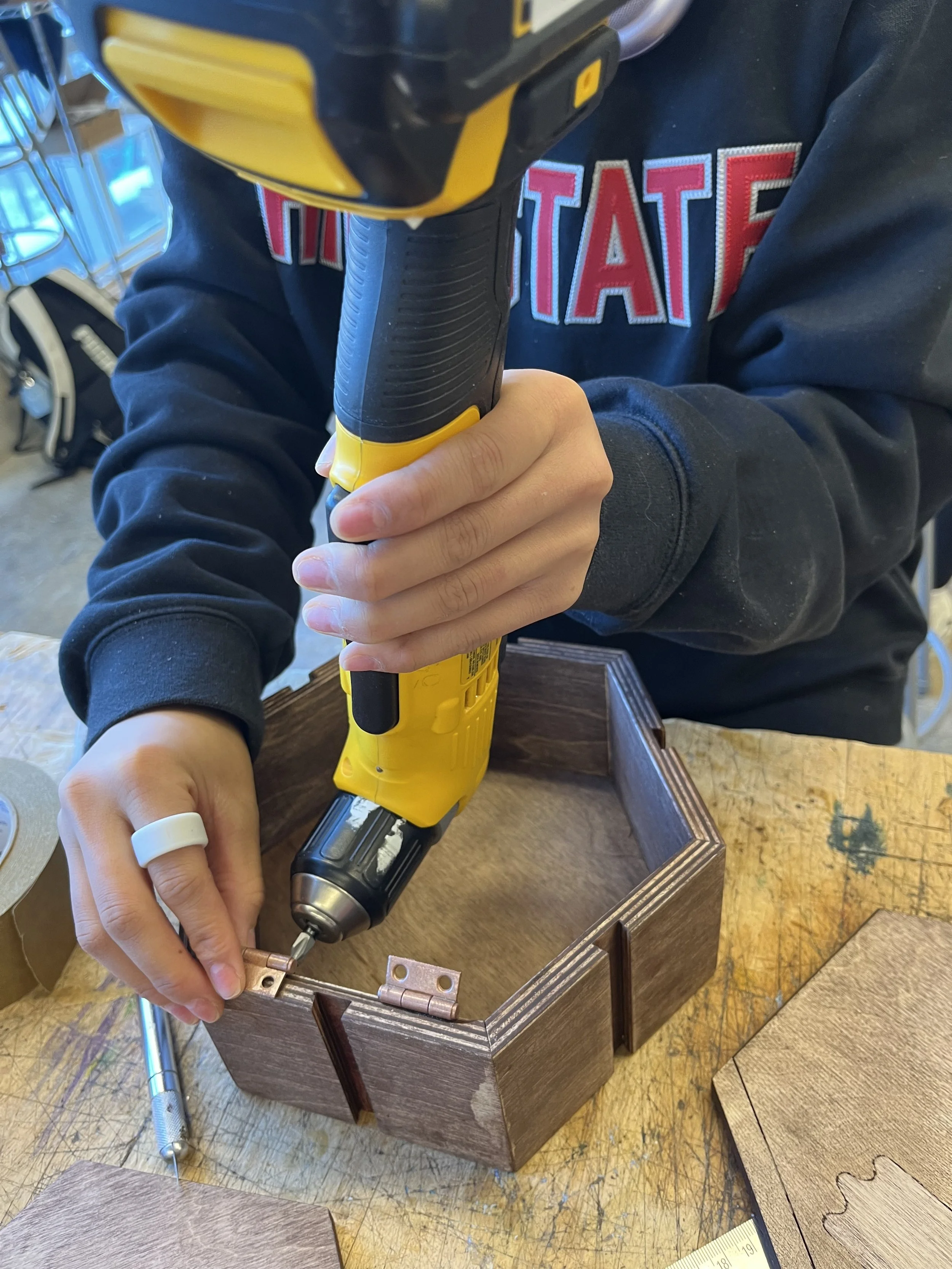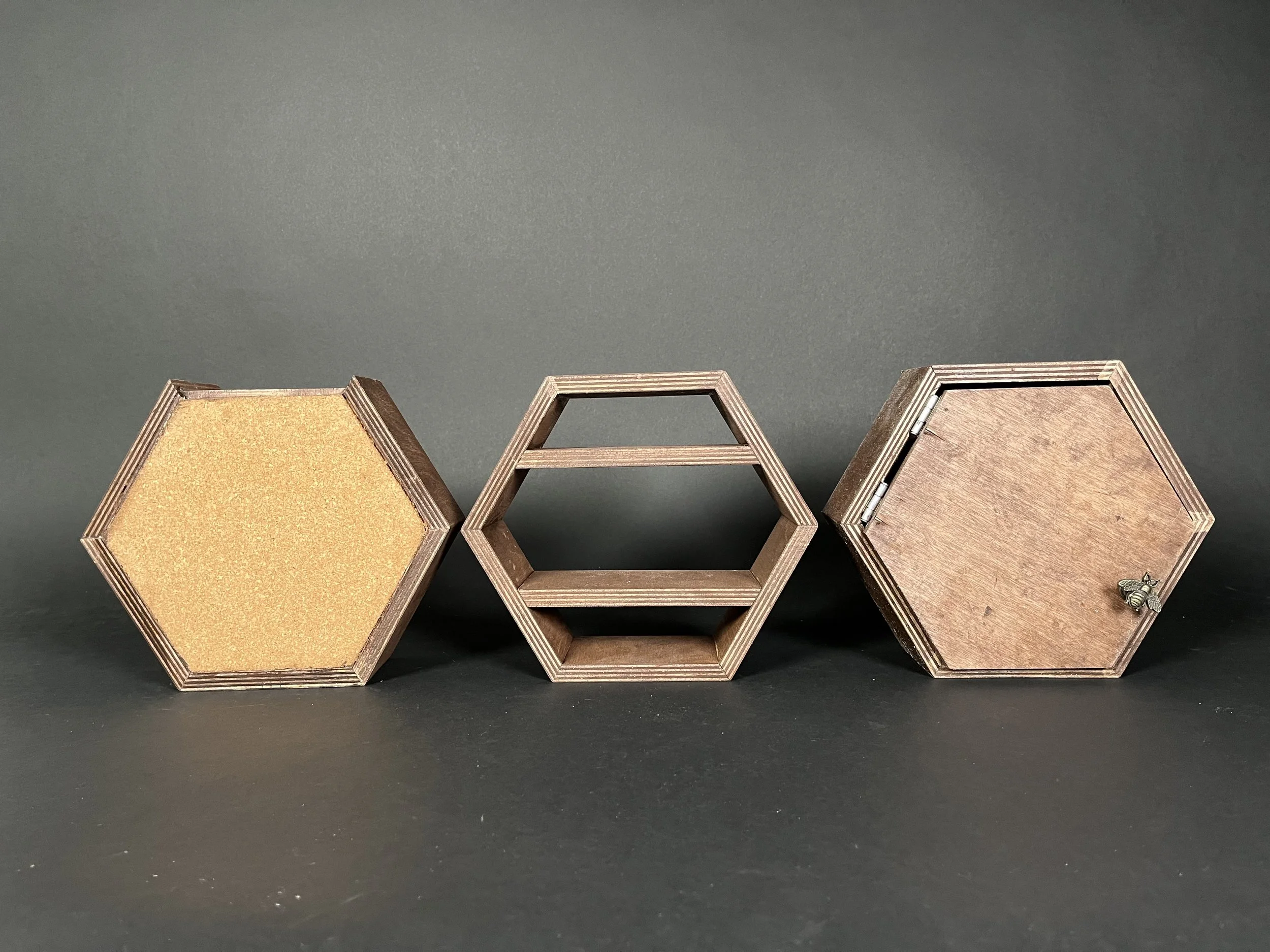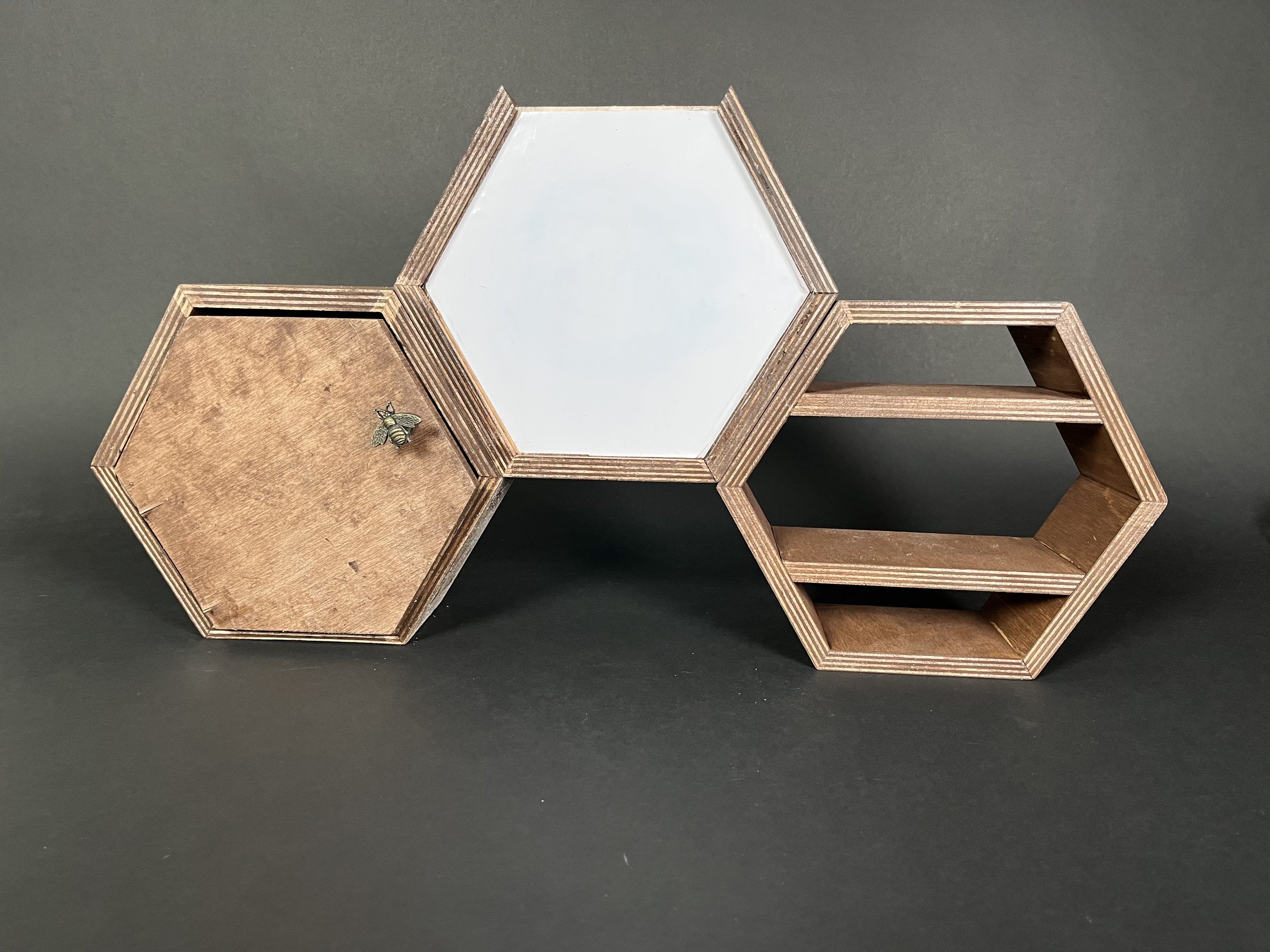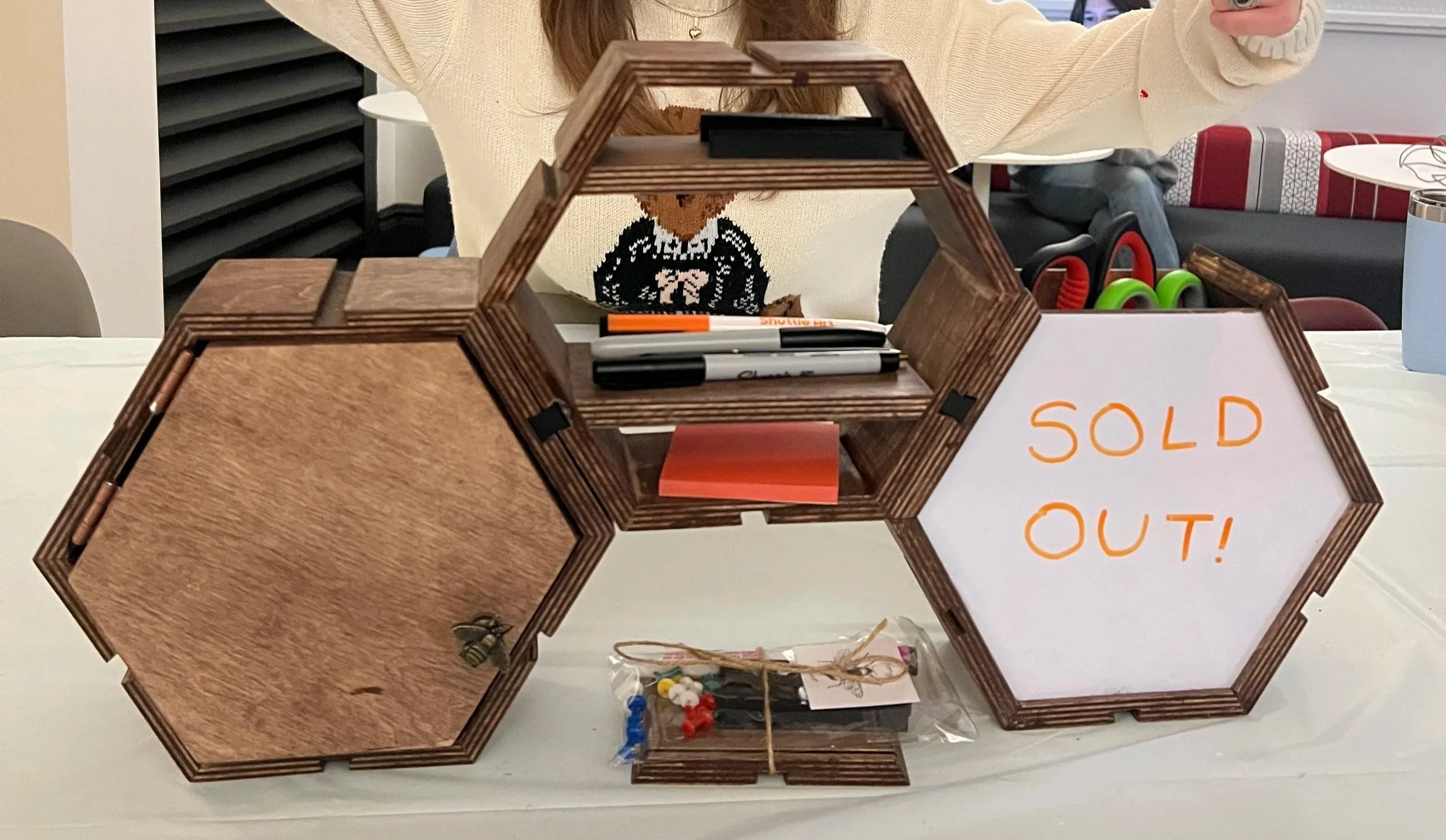 During a semester-long project, my partner Anya Peterman and I designed a modular set of hexagonal organizers based upon user and market research conducted at the beginning of the semester. With the goal of producing and selling ten units at the annual Winter Market and working with a $150 budget, we developed a system that stacks vertically and allows for flexible configuration. This project emphasized research-driven design, sustainability, and cost-effective fabrication.